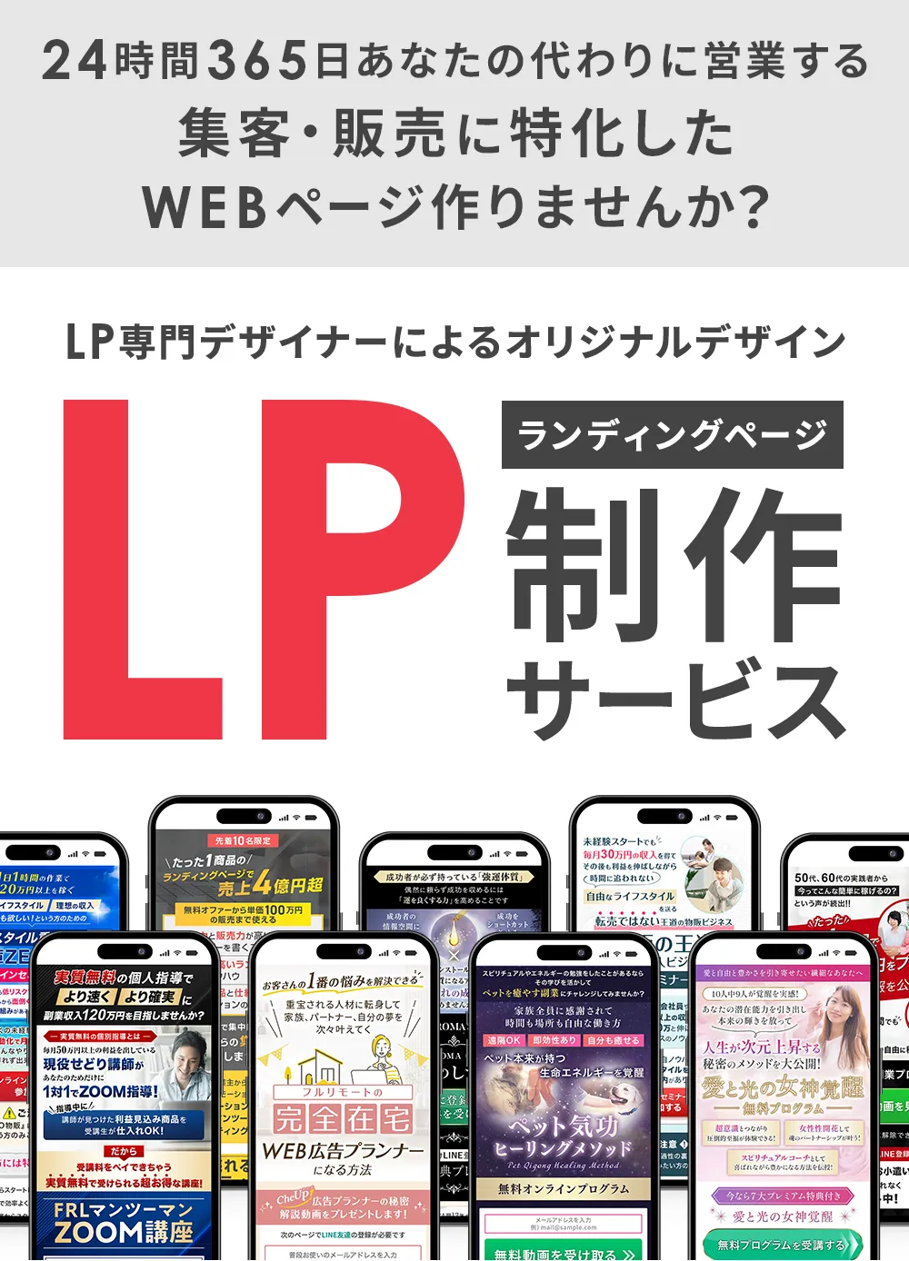 | 原稿は基本お客様にご用意いただいておりますが、LPの構成に基づいた穴埋め式テンプレートをご用意しています。 テンプレートを使用する場合、納期が通常より長くなる可能性がございます。 |